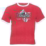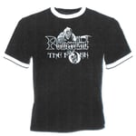 Screen printed on Fruit of the Loom ringer t-shirts, which run a size small - BEWARE!